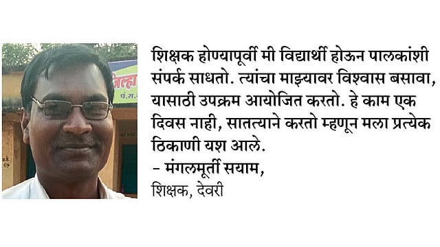 शिक्षक होण्यापूर्वी मी विद्यार्थी होऊन पालकांशी संपर्क साधतो. त्यांचा माझ्यावर विश्वास बसावा, यासाठी उपक्रम आयोजित करतो. हे काम एक दिवस नाही, सातत्याने करतो म्हणून मला प्रत्येक ठिकाणी यश आले.