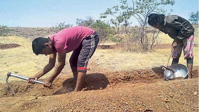 गोंदवले - स्वतःला गुठांभर जमीन नसतानाही गोंदवले खुर्द (ता. माण) येथील बहीण-भाऊ गावचा दुष्काळ हद्दपार करण्यासाठी जिद्दीने पेटून उठले आहेत.