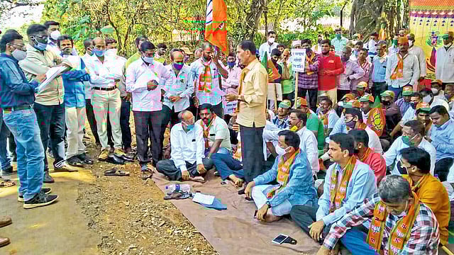 तालुक्यातील रस्त्यांची दुरावस्था, वाढीव विजबिलांसह विविध प्रश्नांसाठी आज येथील तहसिल कार्यालयासमोर भाजपने ठिय्या आंदोलन केले. यात भाजपचे जिल्हाध्यक्ष राजन तेली, तालुकाध्यक्ष नासीर काझी, सभापती अक्षता डाफळे, उपसभापती दुर्वा खानविलकर, अरविंद रावराणे, भालचंद्र साठे, जयेंद्र रावराणे, बाळा हरयाण, राजेंद्र राणे, सुधीर नकाशे, दिगंबर मांजरेकर, हुसेन लांजेकर आदी सहभागी झाले होते.