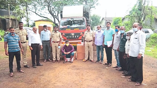 गोव्यातून ट्रकमधून अवैध दारू वाहतूक होत असल्याची माहिती कणकवली पोलिसांना मिळाली होती. त्यानुसार ओसरगाव येथे पोलिसांनी पाळत ठेवली होती. ट्रक ओसरगाव येथे आल्यानंतर पोलिसांनी ट्रक चालकाला थांबण्याचा इशारा केला. मात्र, ट्रक चालकाने पोलिसांना हुलकावणी देत तेथून कणकवलीच्या दिशेने पळवला. त्यानंतर कणकवली पोलिसांनी ट्रकचा पाठलाग सुरू केला. शहरातील नरडवे तिठा येथे ट्रक अडविण्यात आला.