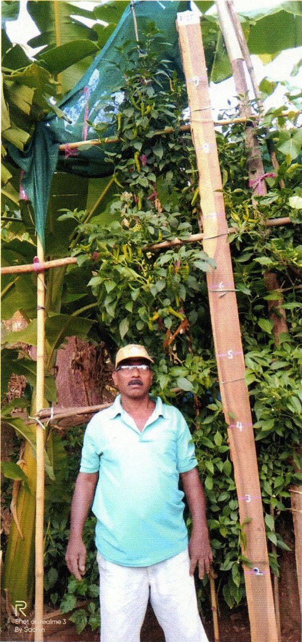 तुळस-सावंतवाडा येथील रहिवासी तेंडुलकर हे आंबा बागेमध्ये काम करुन उदरनिर्वाह करतात. आपल्या घराच्या परसबागेत त्यांनी विविध प्रकारची झाडे लावून त्याचे उत्पन्नही ते घेत असतात. उत्पन्न घेताना वेगवेगळे प्रयोग करणे ही त्यांची आवड आहे. 2019 मधील गणेश चतुर्थीमध्ये त्यांनी परसबागेत मिरचीचे रोप लावले होते.