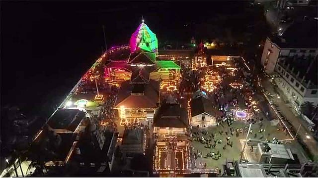 देवगड - तालुक्यातील श्री क्षेत्र कुणकेश्वर मंदिरात दिपावली वार्षिक उत्सवानिमित्त पाडव्याला (ता.28) रात्री मंदिरासह परिसरात दिपोत्सव साजरा करण्यात आला. रोषणाईमुळे मंदिर परिसर उजळून निघाला होता. सोमवार असल्याने यावेळी विविध ठिकाणच्या भाविकांनी गर्दी केली होती. सुमारे दहा हजार पणत्या प्रज्वलीत केल्याची माहिती देवस्थान ट्रस्टचे अध्यक्ष किशोर पेडणेकर यांनी दिली. दरम्यान, मंदिरात सुगम संगीताचा कार्यक्रमही सादर करण्यात आला.