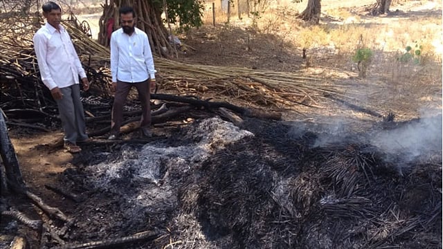 कुरुंग गावातील शेतकरी ग्रामस्थ रामचंद्र भोईर यांनी पावसाळ्यात आपल्या जनावरांचा चारा साठवून ठेवला होता.त्यात भाताच्या 1200 मोळ्या आणि सरपणासाठी लाकडे आणि शेणाच्या गोऱ्या गोळा करून ठेवल्या होत्या. गावाच्या बाहेर अनेक वर्षे सुरक्षित असलेल्या त्या भाताच्या मोळ्या आणि लाकडे तसेच शेणाच्या गोऱ्या यांना 23 एप्रिलच्या रात्री अज्ञात व्यक्तीने लावलेल्या आगीमध्ये लक्ष्य केले. रात्री अचानक लागलेल्या आगीबद्दल शेतकरी रामचंद्र भोईर यांना कळल्यावर त्यांचे कुटुंबीय हे मोळ्या ठेवलेल्या ठिकाणी धाव घेतली,पण भाताच्या मोळ्या,शेणाच्या गोऱ्या,लाकडे हे आगीच्या भक्ष्यस्थानी पडल्याने त्यांना वाचवता आले नाही.