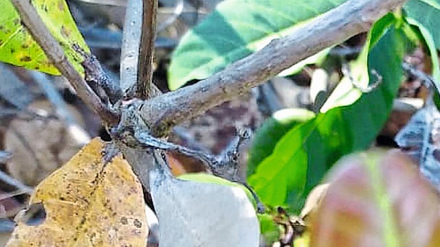 रत्नागिरी तालुक्यात शेकडो एकर काजू बागांमध्ये फांदीमर होत असल्याच्या तक्रारी कृषी विभागाकडे येत होत्या. त्यानुसार तरवळ, आगवे, विल्ये, उक्षी येथील कृष्णा मालप, रमेश मालप, गुणाजी मालप, संतोष देसाई यांच्या बागांचे प्रादेशिक नारळ संशोधन केंद्रातील किटकशास्त्रज्ञ डॉ. संतोष वानखेडे, तालुका कृषी अधिकारी विनोद हेगडे, मंडळ कृषी अधिकारी जयेश काळोखे, बापुराव शेंडगे, नितीन रांजण, रुपाली वायाळ यांच्यासह काजू बागांची पाहणी केली. त्या परिसरातील अनेक काजूच्या झाडांवर फांदीमर आढळून आले. पालवी सुकून गेल्यामुळे त्यावर मोहोर येणेच शक्य नसल्याचे दिसत आहे. त्याचा फटका उत्पादनावर होईल असे काजू बागायतदार कृष्णा मालप यांनी कृषी अधिकाऱ्यांना सांगितले.