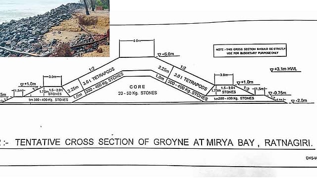 साडेतीन कि. मी. लांबीच्या बंधाऱ्यावर बारा ग्रोयन टाकले जाणार आहेत. दोन ग्रोयनमधील अंतर तीनशे ते पाचशे मीटर ठेवले जाईल. हे ग्रोयन पूर्णतः टेट्रापॉड टाकून तयार केले जातील. मुख्य बंधाऱ्याचे दगड साडेसहा मीटर खोल टाकून पाया मजबूत करण्यात येणार आहे. ग्रोयन बनवतानाही वाळूत खोदून टेट्रापॉड टाकण्यात येतील. ग्रोयनचा पुढील भाग विस्तारित असल्यामुळे लाटा त्यावर आपटत राहतील. लाटांबरोबर येणारी वाळू दोन ग्रोयनच्या मधील मोकळ्या जागेत साचून राहील. हळहळू वाळू साचून तेथील भाग भरुन जाणार आहे.