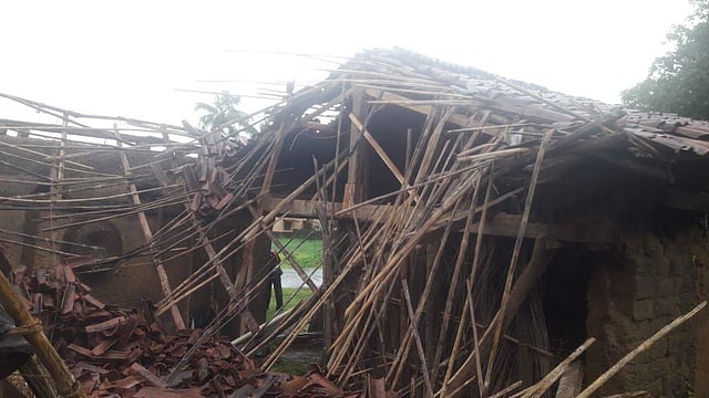 बांदा (सिंधुदुर्ग) - मडुरा पंचक्रोशीत मुसळधार पावसाचा जोर वाढल्याने पाडलोस-केणीवाडा येथील सूर्यकांत नाईक व प्रशांत नाईक यांचा मांगर जमिनदोस्त झाला. गेल्या मेमध्ये संपूर्ण मांगराचे दीड लाखांचे नुकसान झाले. तसेच मांगराला लागूनच असलेल्या गोठ्यातील सात जनावरे सुदैवाने वाचली तर एक जखमी झाले.