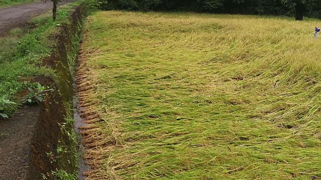 ऑक्टोबर महिन्याच्या सुरवातीला पावसाचा जोर ओसरला आणि कडकडीत उन पडले. दुसर्या आठवड्यात परतीचा पाऊस सुरू झाला आहे. शेतकर्यांनी भात कापून सुकवण्यासाठी मळ्यातच ठेवलेले होते. ढगफुटीप्रमाणे पडलेल्या पावसाचा सर्वाधिक तडाखा दक्षिण रत्नागिरीला बसला. लांजा, राजापूर, रत्नागिरीसह संगमेश्वर तालुक्यातील शेकडो एकरची भातशेती झोपली. शनिवार, रविवार आणि सोमवारी सलग पाऊस सुरू होता. मंगळवारी सकाळच्या टप्प्यात उघडीप मिळाली होती. पण सायंकाळी पुन्हा पावसाला सुरवात झाली. ढगांच्या गडगडाटासह पडणार्या पावसाने शेतकर्यांची गडबड झाली. सकाळी उन पडल्यामुळे अनेकांनी भात गोळा करण्यास सुरवात केली होती. तीन दिवस पावसात भिजल्याने लोंबी काळी पडली असून उत्पादनावर परिणाम होणार आहे. 16 आणि 17 ऑक्टोबरला मुसळधार पावसाची शक्यता असल्यामुळे तयार झालेले भातपीक वाया जाण्याची भिती शेतकरी व्यक्त करत आहेत.