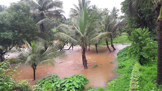 पहाटे सुरू झालेला मुसळधार पाऊस दुपारी बारावाजेपर्यत सुरू होता. पुराच्या शक्यतेमुळे तालुक्यातील बहुतांशी शाळांना दुपारनंतर सुट्टी देण्यात आली. शांती नदीचे पाणी पात्राबाहेरून पडले आहे. कोकिसरे नारकरवाडी येथे शेतीमध्ये पुराचे पाणी पसरले आहे.