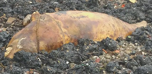 हर्णे : दापोलीतील हर्णे पाजपंढरी कडे जाणाऱ्या रस्त्यालगतच समुद्रकिनारी मृत कुजलेल्या अवस्थेत डॉल्फिन सापडला. सदर डॉल्फिनला वनविभागाच्या अधिकाऱ्यांनी पंचनामा करून तिथेच पुरून टाकले.