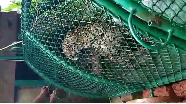 अशोक यांच्या लक्षात ही गोष्ट आली. त्यांनी दरवाज्याच्या फटीतून बिबट्या आणि कुत्रा आतमध्ये असल्याची खात्री केली व तातडीने वन विभागाशी संपर्क केला. पिंजरा घेऊन वन विभागाचे कर्मचारी तातडीने घटनास्थळी दाखल झाले. प्रथम त्यांनी शौचालयाचा वरील भाग फळ्या ठोकून बंद केला आणि शौचालयाच्या तोंडावर पिंजरा लावून या बिबट्याला जेरबंद केले. वन विभागाच्या माहितीनुसार ही चार वर्षांची मादी आहे. या मादीची वैद्यकीय तपासणी करून त्याला नैसर्गिक अधिवासात सोडण्यात येईल असे वनविभागाच्या अधिकाऱ्यांनी सांगितले.
