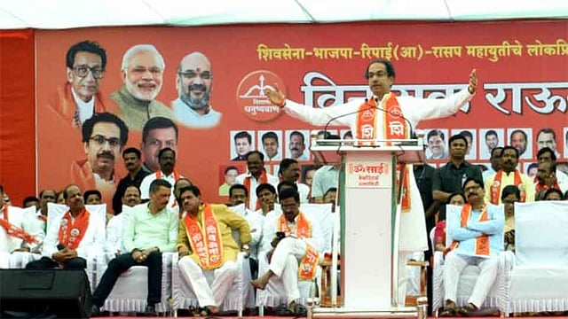 देवरूख येथे महायुतीचे रत्नागिरी - सिंधुदुर्गातील उमेदवार विनायक राऊत यांच्या प्रचारार्थ सभा झाली. यामध्ये श्री. ठाकरे बोलत होते. काँग्रेसवर टीका करताना श्री. ठाकरे म्हणाले, साठ वर्षे खाऊन ज्यांची पोटं भरली नाहीत, त्यांनी या देशावर केवळ दरोडे टाकण्याचे काम केले. अनेक घोटाळे केले. घोटाळ्यांची बाराखडी देखील कमी पडेल. स्वतः दरोडेखोर आणि दुसर्याला चोर म्हणणार्यांचा एक पाय तुरूंगात आहे. हे त्यांनी विसरू नये, असे सांगताच उपस्थितांनी टाळ्यांचा एकच जयजयकार केला.