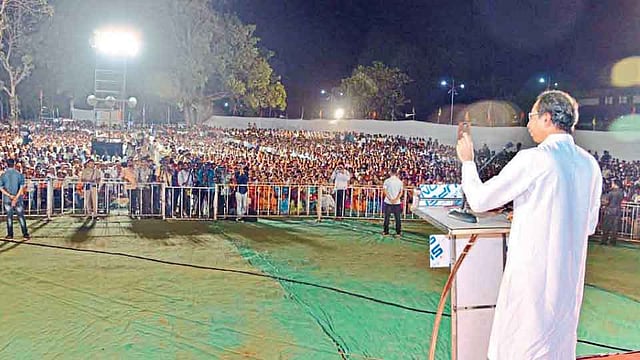 शिवसेना-भारतीय जनता पक्ष महायुतीची सभा उपजिल्हा रुग्णालयासमोरील पटांगणात झाली. यात श्री. ठाकरे यांनी प्रमुख भाषण केले; तर केंद्रीय मंत्री सुरेश प्रभू, शिक्षणमंत्री विनोद तावडे, पालकमंत्री दीपक केसरकर, आमदार प्रसाद लाड, खासदार विनायक राऊत, भाजपचे जिल्हाध्यक्ष प्रमोद जठार, गौरीशंकर खोत यांनीही विचार मांडले. त्यांच्याबरोबर आमदार वैभव नाईक, आमदार उदय सामंत, शिवसेनेच्या महिला आघाडी जिल्हाप्रमुख जान्हवी सावंत, नीलम सावंत-पालव, अरुण दुधवडकर, अतुल काळसेकर व शिवसेना, भारतीय जनता पक्ष, रिपब्लिकन पक्ष आणि रासपचे पदाधिकारी उपस्थित होते.