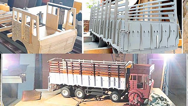 मिरजोळे एमआयडीसीमधील त्यांच्या विश्वकर्मा डेकोरेटर्समध्ये हा ट्रक बनवण्यास किमान पाऊण महिना लागला. यासाठी त्यांनी अगदी बारकाईने अभ्यास केला. सुरवातीला ट्रकचे फोटो काढले. मग फुटाला इंच अशी लांबी घेऊन हे हुबेहूब ट्रकचे मॉडेल बनवले. खरा ट्रक साडेबत्तीस फूट असून लाकडी ट्रकची लांबी साडेबत्तीस इंच आहे. ट्रक तयार झाल्यावर रंगकामात रत्नागिरीतील मूर्तीकार, मेकअपमन नरेश पांचाळ, प्रथमेश व चिन्मय पांचाळ यांचे सहकार्य त्यांना लाभले आहे.