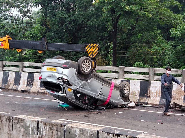 चालक देवाशीष बनूमलिक खाडंगा हे आपल्या ताब्यातील मोटर (एमएच 03 सीव्ही 1153 ) घेवून मुंबईच्या दिशेने जात होते. यावेळी मोटरीवरील नियंत्रण सुटल्याने हा अपघात झाला. अपघातात चालकासह सौरभ अशोक अगरवाल, स्वाती अशोक अगरवाल, तन्मय देवीशीष खाडंगा (वय 8 सर्व रा. कांदिवली मुंबई) हे जखमी झाले. त्यांच्यावर येथील उपजिल्हारूग्णालयात उपचार करण्यात आले.मोटारीवरील चालकाचा ताबा सुटल्याने मोटर रस्त्यावर पलटी झाली. तसेच रस्त्यावरील मोटरसायकल, टाटा हत्ती टेम्पो, दिलीप बिल्डकॉनच्या कॉंक्रीट मिक्सराही धडक दिली आहे.