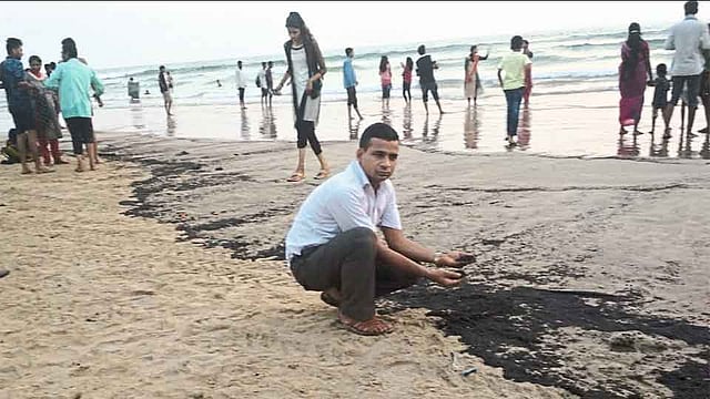 गणपतीपुळे समुद्रकिनारी फिरत असताना एका भागात काळसर रंगांचे पाणी लाटेबरोबर येताना पाटील यांनी पाहिले. निरीक्षणाअंती हे तेलासारखे चिकट असल्याचे आढळून आले. तेल व वाळू यांचे ते चिकट मिश्रण लाटेबरोबर किनारी येऊन काही भाग काळपट पडल्याचे पाटील यांना आढळून आले. हे तेल बोटींचे की मच्छीमारी करणाऱ्या ट्रॉलरांचे हे समजायला काही मार्ग नाही.