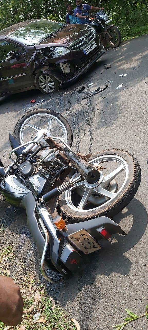 विशाल हरमलकर हा दुचाकीने (एम एच 07 6225) तळवणेतून सावंतवाडीच्या दिशेने येत होता. मळगाव येथील पेट्रोल पंप लगतच्या वळणावर आला असताना समोरून आलेल्या मोटारीची (जीए 08 एन 9881) जोरदार धडक दुचाकीला बसली. या धडकेत दुचाकीस्वार गाडीवरून फेकला गेल्याने त्याच्या डोक्याला व पायाला गंभीर दुखापत झाली.