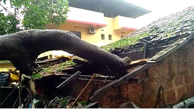 खारेपाटण येथे घरावर कोसळले झाड
