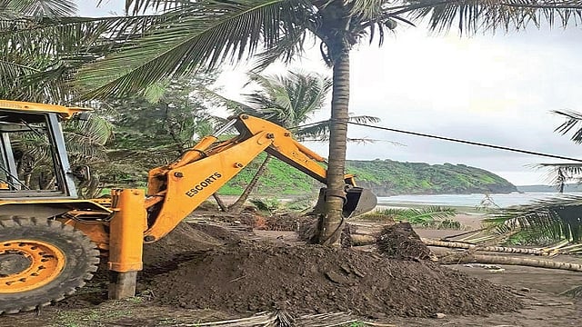 चार दिवसांपूर्वी समुद्राला आलेल्या मोठ्या भरतीच्या लाटांनी भाट्ये किनाऱ्यांवरील नारळाची झाडे उद्ध्वस्त केली. त्यामुळे झाडांचे नुकसान झाले होते. खासगी रिसॉर्टचालकाची सुमारे पस्तीस झाडे बघता बघता कोसळली होती. याचबरोबर तेथील आणखी काही झाडे पडण्याच्या स्थितीत आहेत. वाळूमध्ये नारळाच्या झाडांची लागवड करून ती वाढविण्यासाठी गेली बारा वर्षे प्रयत्न केले होते. पडलेल्या झाडांच्या ठिकाणी ती पुन्हा लागवड करून ती वाढवणे म्हणजे दिर्घ कालावधी लागणार आहे. त्यावर घेतलेली मेहनतही वाया जाणार होती. हे लक्षात घेऊन रिसॉर्टचालकाने उपळून पडलेल्या झाडांचे पुनरुज्जीवन करण्याचा निर्णय घेतला आहे. त्यानुसार खर्च येणार आहे. हा खर्च करण्याचीही तयारी त्यांनी केली आहे. जेसीबीने खड्डा खोदून पडलेली झाडे उभी करण्याचे काम हाती घेतले असून गेले दोन दिवस काम सुरु आहे. आतापर्यंत दहा झाडे उभी राहिली आहेत. खासगी रिसॉर्ट चालकांनी घेतलेल्या या भूमिकेचे पर्यावरणप्रेमी नागरिकांकडून स्वागत होत आहे.