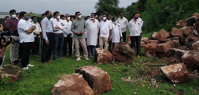 यावेळी आमदार वैभव नाईक, शिवसेना नेते अतुल रावराणे, सभापती सुनील पारकर, सरपंच प्रसाद देवधर, उपसरपंच महेश बिडये, जिल्हा उपप्रमुख विलास साळसकर, तालुकाप्रमुख मिलिंद साटम, दामाजी पाटील, यशपाल जैतापकर यांच्यासह अन्य उपस्थित होते. किल्याच्या ढासळलेल्या भागाची खासदार संभाजी राजे यांनी पाहणी करण्याबरोबरच संपूर्ण किल्याच्या तटबंदीवरून फिरून किल्याची बारकाईने पाहणी केली.