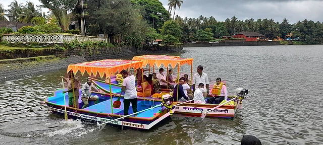 सावंतवाडी : गणेश चतुर्थी सणामध्ये येथील मोती तलावात गणेश विसर्जन नगर पालिका प्रशासनाकडून खरेदी करण्यात आलेल्या बोटींचा शुभारंभ आज नगराध्यक्ष संजू परब यांनी केला. गणेश विसर्जन हा बरोबर मोती तलावाची स्वच्छता व पर्यटन वाढीसाठी या बोटींचा वापर केला जाणार असल्याचे यावे नगराध्यक्ष श्री परब यांनी सांगितले.