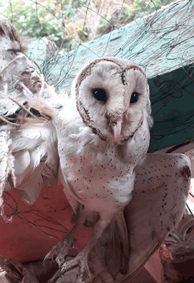 बुधवारी (ता. 26) सकाळी आठच्या सुमारास हर्णै मल्लखांबपेठ येथील गणेश पावसे यांच्या टेरेसवर जाळ्यामध्ये अडकलेल्या अवस्थेत घुबड पावसे यांना दिसून आला. त्यांनी ताबडतोब सर्पमित्र प्रितम साठविलकर यास फोन करून बोलवून घेतले. प्रितम याने घटनास्थळी ताबडतोब येऊन त्याला जाळ्यामध्ये गुरफटलेल्या अवस्थेतून सोडवले. जाळ्यामध्ये गुरफटल्यामुळे घुबडाला जखम झाली होती. त्यावर तात्पुरते औषधोपचार केले. त्यानंतर प्रीतमने ताबडतोब दापोली वनविभाग खात्याच्या अधिकार्यांना पाचारण केले. यावेळी वनपाल गणेश खेडेकर यांनी हजर होऊन घुबडाला ताब्यात घेतले.