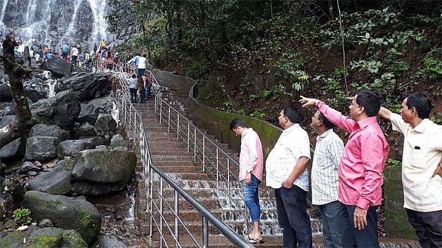 या पार्श्वभूमिवर तेली यांनी आज धबधब्याच्या ठिकाणी जाऊन पाहणी केली. यावेळी तालुकाध्यक्ष महेश सारंग, नगरसेवक आनंद नेवगी, प्रथमेश तेली, आत्माराम पालेकर, गजानन पालेकर आदी उपस्थित होते. यावेळी तेली यांनी परिसरातील नागरिक व व्यापाऱ्यांशी चर्चा केली असता धबधब्याच्या वरच्या ठिकाणी वनविभाग सहा फूट उंचीचे बंधारे बांधले आहेत. त्यामुळे हा प्रकार निर्माण झाला आहे. दरवर्षीच्या तुलनेत धबधब्यावर पाणी कमी आहे त्याबाबत पर्यटकातून नाराजी व्यक्त होत आहे, असे स्थानिकांनी सांगितले. त्यामुळे पर्यटनावर होणारा परिणाम लक्षात घेता खुले करणे गरजेचे आहे, अशी मागणी केली.