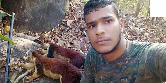 कुणकेरी येथील वराडकर हा मार्चमध्ये आपल्या गावी सुट्टीसाठी आला होता. त्याने 2 ते 3 एप्रिलदरम्यान वाघबीळ येथील जंगलात जाऊन दोन शेकरूंची गोळ्या घालून शिकार केली. यानंतर त्या शेकरूंसोबत त्याची सेल्फी काढून आपल्या व्हॉट्सअॅप स्टेटसवर ठेवली. यामुळे या प्रकाराला वाचा फुटली. हे फोटो वाइल्ड लाइफ क्राइम कंट्रोल ब्युरोचे सदस्य वन्यजीव संरक्षक रोहन भाटे यांच्या हाती लागल्यावर त्यांनी कॉलद्वारे तसेच लेखीपत्राद्वारे याची माहिती येथील वनविभागाचे उपवनसंरक्षक समाधान चव्हाण तसेच मुख्य वनसंरक्षक नितीन काकोडकर यांना दिली. या प्रकाराची माहिती तातडीने जिल्ह्याच्या वनविभागाला देण्यात आली. उपवनसंरक्षक चव्हाण यांना मिळाल्यावर त्यांनी वराडकर याला ताब्यात घेण्याचे आदेश दिले. संशयिताला आज सकाळी साडे आठच्या सुमारास त्याच्या कुणकेरी येथील घरातुन ताब्यात घेतले.