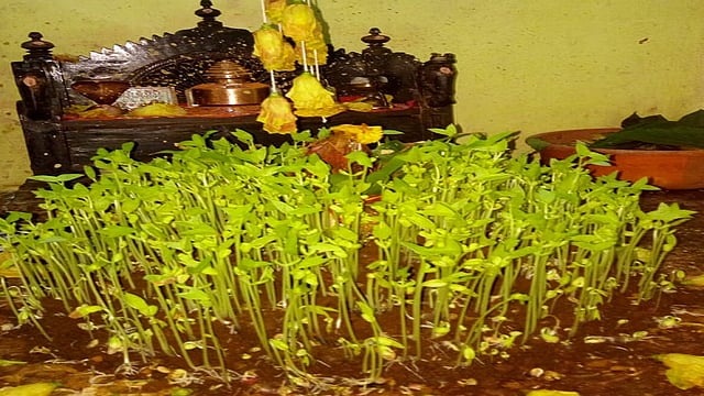 मंडणगड : कोकणात नवरात्रात घटस्थापनेच्या दिवशी घटावर विविध प्रकारच्या धान्यांची पेरणी करून दसऱ्याच्या दिवशी त्या धान्यांचे वाढलेले अंकुर म्हणजे रो उपटून देवाला वाहण्याची पिढ्यान्पिढ्याची अठरा धान्ये पेरण्याची भक्तिमय प्रथा मंडणगड तालुक्यातील ग्रामीण भागात आजही जोपासली जाते. गावोगावी कुलस्वामिनीचे घट बसविले असून नऊ दिवस त्याची पूजाअर्चा करणार आहे. नवरात्रीचे नऊ दिवस अखंडदीप तेवत