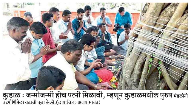 कुडाळ - जन्मोजन्मी हीच पत्नी मिळावी, तिला उत्तम आरोग्य, दीर्घायुष्य प्राप्त व्हावे, म्हणून येथील पुरुष मंडळींनी वडाची पूजा केली. गेली आठ वर्षे हा अनोखा उपक्रम ते राबवित आहेत. याचे राज्यभर कौतुक होत आहे.