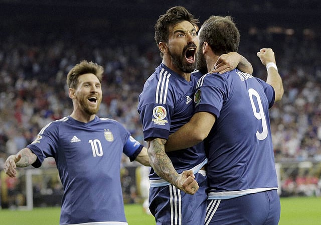 अर्जेंटिना आणि अमेरिका यांच्यात उपांत्य फेरीची लढत झाली. भरात असलेल्या मेस्सीला रोखण्याचे खरे आव्हान अमेरिकेसमोर होते. मात्र, अमेरिकेच्या खेळाडूंना मेस्सीला रोखण्यात अपयश आले. त्याने स्वतः एक गोल केला. तर, हिग्वेनला एका गोल करण्याची संधी करुन दिली. लावेझीने तिसऱ्याच मिनिटाला गोल करुन अर्जेंटिनाला सुरवातीलाच आघाडी मिळवून दिली होती. त्यानंतर 32 व्या मिनिटाला मेस्सीने 25 यार्डवरुन मारलेली अप्रतिम फ्रि कीक अमेरिकेचा गोलकिपर ब्रॅड गुझान अडविण्यात अपयशी ठरला. या गोलमुळे अर्जेंटिनाला मध्यांतरापूर्वीच 2-0 अशी आघाडी घेता आली.