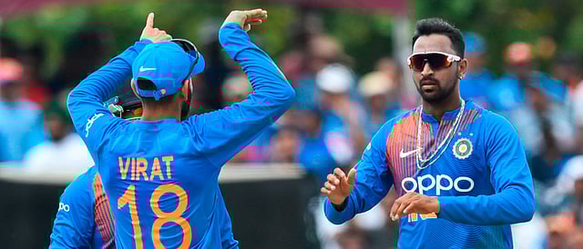 संक्षिप्त धावफलक - भारत 20 षटकांत 5 बाद 167 (रोहित शर्मा 67 -51 चेंडू, 6 चौकार, 3 षटकार, शिखर धवन 23, विराट कोहली 28, कृणाल पंड्या नाबाद 20, ओशान थॉमस 2-27, शेल्डन कॉट्रेल 2-25) डकवर्थ लुईस नियमानुसार वि.वि. वेस्ट इंडिज 15.3 षटकांत 4 बाद 98 (रोवमॅन पॉवेल 54, कृणाल पंड्या 2-23)