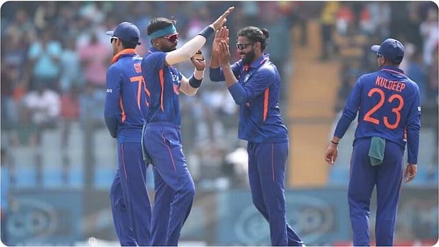 India vs Australia 1st ODI : भारत आणि ऑस्ट्रेलिया यांच्यातील तीन सामन्यांच्या एकदिवसीय मालिकेचा थरार आजपासून रंगणार आहे. पहिला सामना मुंबईतील वानखेडे स्टेडियमवर खेळल्या जात आहे. भारताने नाणेफेक जिंकून प्रथम गोलंदाजी करण्याचा निर्णय घेतला आहे. आधी मार्शचा तांडव... नंतर भारतीय गोलंदाजांनी केली 35 षटकातच कांगारुंची शिकार... कांगारूंचा संघ 35.4 षटकांत 188 धावांत गारद झाला आणि भारतासमोर 189 धावांचे लक्ष्य ठेवले