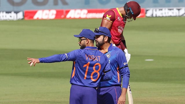 टी-20 वर्ल्ड कप स्पर्धेपूर्वी विराट कोहलीने टी-20 संघाचे नेतृत्व सोडले. त्याच्या या निर्णयानंतर टी-20 सह वनडे संघाचे नेतृत्व रोहितच्या खांद्यावर देण्यात आले. आफ्रिका दौऱ्यावरील वनडेत विराट कोहली लोकेश राहुलच्या नेतृत्वाखाली मैदानात उतरल्याचे पाहायला मिळाले. कॅप्टन्सीतून पाय उतार झाल्यानंतर रोहित-विराट पहिल्यांदाच मैदानात एकत्र खेळत आहेत. रोहित आणि विराट यांच्यातील मतभेदावर नेहमीच चर्चाही होते. पण मैदानात मात्र तसे काही चित्र दिसत नाही. वेस्ट इंडीज विरुद्धच्या सामन्यात रोहित आणि विराट यांच्यात ऑल इज वेलचा सीन पुन्हा अनुभवायला मिळाला.