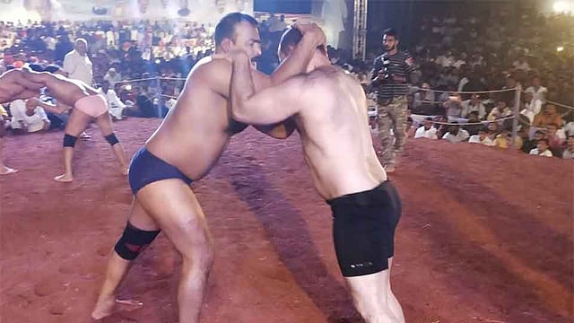 विटा - आंतरराष्ट्रीय कुस्तीच्या महादंगलीत प्रथम क्रमांकाच्या कुस्तीत ट्रिपल महाराष्ट्र केसरी विजय चौधरी (पुणे) याने जॉर्जियाच्या टेडोरे लेब्नॉईझे (जॉर्जिया) याला घिसा डावावर अस्मान दाखवत सात लाखांचे बक्षीस जिंकले.
