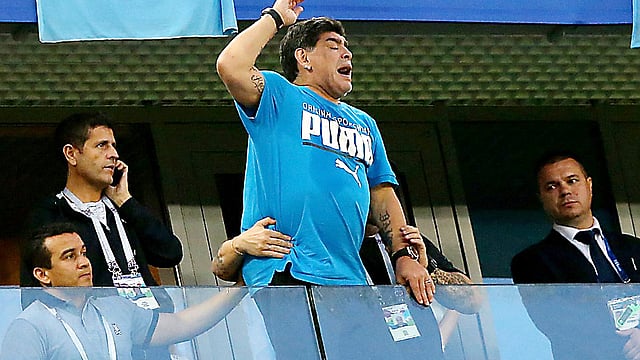 57 वर्षीय मॅराडोना अर्जेंटिनाचा विजय अतिउत्साहात साजरा करताना कोसळले आणि त्यांना तातडीने रुग्णालयात न्यावे लागले. सामन्याचा निकाल स्पष्ट झाल्यावर त्यांनी आक्षेपार्ह हातवारे करत प्रचंड जोशात विजय साजरा केला. त्यानंतर मात्र त्यांना चालणेही अवघड झाले.