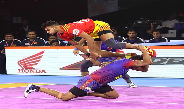 सलग दोन वर्षे उपविजेतेपद मिळवणारा गुजरातचा संघ अनुभवात उजवा आहे, परंतु दिल्लीने त्यांना झुंजवले. पिछाडीवरून बरोबरीनंतर आघाडी अशी दिल्लीने प्रगती केली, परंतु अखेरची सहा मिनिटे असताना त्यांना लोण स्वीकारावा लागला आणि 20-25 च्या पिछाडीनंतर त्यांना बाजी पलटवता आली नाही. जी. बी. मोरेने चढायांत पाच; तर पकडींमध्ये चार गुण मिळवले; तर दिल्लीकडून नवीन कुमारने सुपर टेनकरूनही गुजरातचीच सरशी ठरली.