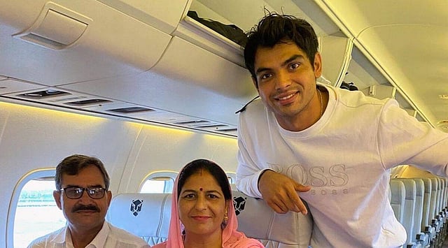 नवी दिल्ली : टोकियो ऑलिंपिक स्पर्धेत ऐतिहासिक सुवर्णपदक जिंकणाऱ्या भालाफेकपटू नीरज चोप्राने त्याचे अजून एक स्वप्न पूर्णत्वास नेले आहे. शनिवारी सकाळी नीरज चोप्राने आपल्या जन्मदात्या माता-पित्यांचा पहिल्यांदाच विमानप्रवास घडवून आणला. ट्विटरवर आपल्या माता-पित्यांसोबतचे छायाचित्र टाकत त्याने लिहिले की, ‘‘आज आयुष्यातील एक स्वप्न पूर्ण झाले जेव्हा मला पहिल्यांदा माझे आई -वडील विमानामध्ये बसलेले दिसले.