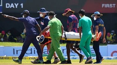 SL vs WI: श्रीलंका आणि वेस्ट इंडीज यांच्यात गालेच्या मैदानात पहिला कसोटी सामना रंगला आहे. या सामन्यादरम्यान वेस्ट इंडीजचा खेळाडू जेरेमी सोलोजानोला गंभीर दुखापत झालीये. जेरेमी सोलोजानो फॉरवर्ड शॉर्ट लेगला फिल्डिंग करत होता. दिमुथ करुणारत्नने ताकदीनं खेळलेला फटका हेल्मेटच्या ग्रिलवर बसला. त्याचा चेंडू लागल्यानंतर स्ट्रेचरवरुन मैदानाबाहेर नेण्यात आले. त्याच्यावर रुग्णालयात उपचार सुरु आहेत. जेरमीसाठी हा पदार्पणाचा सामना होता.