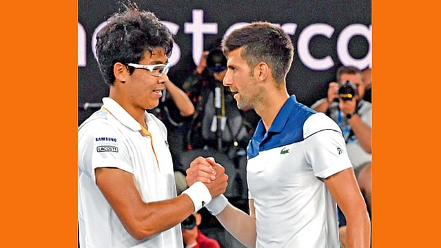 ग्रॅंड स्लॅम स्पर्धेत इतकी मजल मारलेला तो दक्षिण कोरियाचा पहिलाच टेनिसपटू ठरला. २१वर्षीय चुंग जागतिक क्रमवारीत ५८व्या स्थानावर आहे. जोकोविचने आधीच्या फेऱ्यांत केवळ एक सेट गमावला होता. सहा वेळच्या विजेत्या जोकोविचविरुद्ध चुंगने दीर्घ रॅलीत मारलेले ‘व्हीपिंग फोरहॅंड’ आणि ‘बॅकहॅंड पासिंग रिटर्न’ निर्णायक ठरले. अनेक वेळा असे फटके परतविताना जोकोविच अडखळला. काही वेळा नेटमध्ये चेंडू गेला, तर काही वेळा जोकोविच चेंडूपर्यंत पोचूच शकला नाही. जोकोविचला मागील वर्षी डेनिस इस्तोमीनकडून पराभूत व्हावे लागले होते. विंबल्डननंतर त्याला कोपराच्या दुखापतीमुळे मोसमाच्या दुसऱ्या टप्प्यास मुकावे लागले होते. जागतिक क्रमवारीत त्याची १४व्या क्रमांकावर घसरण झाली होती. मोसमातील पहिल्या ग्रॅंड स्लॅम स्पर्धेत त्याच्या पुनरागमनाकडे साऱ्या टेनिस जगताचे लक्ष होते; पण दुर्दैवाने जोकोविचला आधीच्या दुखापतीचा त्रास होणे चाहत्यांसाठी निराशाजनक ठरले. तिन्ही सेटमध्ये जोकोविचने पिछाडी भरून काढत शर्थीचे प्रयत्न केले. पहिल्या सेटमध्ये ०-४, दुसऱ्यात १-४; तर तिसऱ्यात तो १-३ असा मागे पडला होता; पण चुंगने १९ पैकी १४ ब्रेकपॉइंट वाचविले. दुसरीकडे जोकोविचचे फटके ५७ वेळा चुकले. दुसऱ्या सेटमध्ये जोकोविच बेसलाइनवर चेंडू मारताना वेदना झाल्यामुळे कळवळला. तिसऱ्या सेटच्या टायब्रेकमध्ये जोकोविचने ०-३ पिछाडी भरून काढली होती; पण अखेरीस तो तीन तास २१ मिनिटांत हरला.