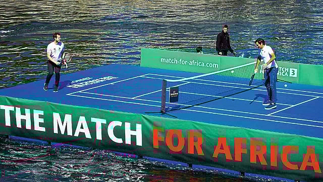 झ्युरीक - रॉजर फेडरर आणि अँडी मरे यांनी लिम्मट नदीवर तराफ्यावर खास उभारण्यात आलेल्या कोर्टवर प्रदर्शनी टेनिस सामन्यात भाग घेतला.