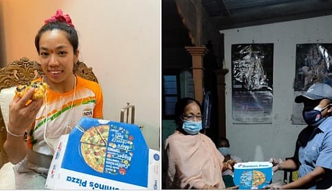 टोकियो ऑलिम्पिक स्पर्धेत आतापर्यंत भारतीय संघाला एकमेव मेडल मिळवून देणारी वेटलिफ्टर मीराबाई चानू मायदेशी परतलीये. टोकियो ऑलिम्पिक स्पर्धेच्या दुसऱ्या दिवशीच चानूने रौप्य पदकाची कमाई करत देशाकडून पदकाचे खाते उघडले होते. वेटलिफ्टिंगमधील 21 वर्षांचा दुष्काळ संपवत नवा विक्रम रचणाऱ्या मीराबाईचे देशभरात कौतुक होत आहे. ऑलिम्पिक स्पर्धेतील वजनदार कामगिरीनंतर राज्य सरकारकडून तिच्यावर बक्षीसांची खैरात झाली. सरकारकडून रोख बक्षीस आणि सरकारी नोकरीची ऑफरही तिला देण्यात आली. यात आणखी एका खास बक्षीसाचा समावेश होता. तो म्हणजे डॉमिनोज इंडियाने तिला आयुष्यभर विनामूल्य पिझ्झा देण्याची घोषणा केली. (tokyo olympics 2020 silver medalist mirabai chanu thanks to dominos india after get pizza)