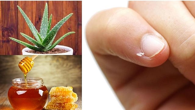 ऋतू बदलला की अनेकदा त्वचा कोरडी पडते. त्यामुळे त्वचेवरील सालं हळूहळू निघू लागतात. म्हणूनच अशा त्वचेवर कोरफडीचा रस लावावा. कोरफडीमुळे त्वचा मऊ व ओली राहते. त्यामुळे नखांजवळील साल निघत असेल तर, कोरफड जेल घेऊन ती काही वेळ फ्रीजमध्ये ठेवावी. त्यानंतर ती नखांभोवती लावाली. थोड्या वेळाने हात धुवून टाकावेत.