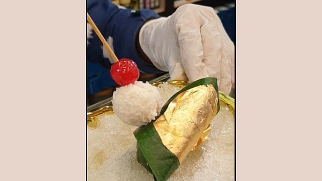 या पानामध्ये सुक खोबरं, खारीक, वेलची, गोड चटणी, गुलकंद, लवंग आणि चेरी ठेवण्यात आली असून या पानाला सोन्याचा वर्क लावला आहे.