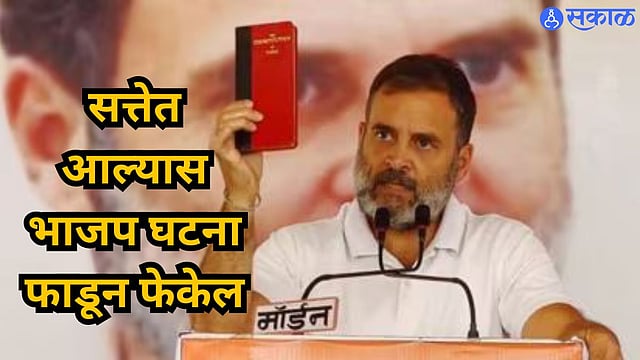 राहुल गांधी यांनी या सभेदरम्यान, राज्यघटनेची प्रतही आणली होती. ती प्रत दाखवत राहुल म्हणाले की, यंदाची निवडणूक ही सामान्य नसून दोन विचाधारांमधील ही लढाई आहे. ‘‘राज्य घटनेमुळेच गरीब, ओबीसी, आदिवासी आणि अनुसूचित जातींमधील व्यक्तींना मनरेगासारखी योजना, जमिनीचे हक्क, आरक्षण आणि अन्य गोष्टी मिळाल्या आहेत.’’ मात्र भाजप पुन्हा सत्तेत आल्यास गृहमंत्री अमित शहा आणि त्यांच्या खासदारांचा राज्यघटना फाडून फेकून देण्याचा मानस आहे. केवळ २०-२५ उद्योगपतींनी हा देश चालवावा अशी भाजपची इच्छा, असा दावा राहुल यांनी केला आहे.