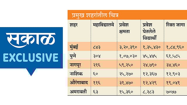 पुणे - राज्यात ऑनलाइन केंद्रीय पद्धतीने राबविण्यात येणाऱ्या अकरावीच्या पहिल्या तीन नियमित फेऱ्यांमध्ये दोन लाख ३८ हजार ७४४ विद्यार्थ्यांनी प्रवेश घेतला असून, तीन लाख २० हजार २६ जागा रिक्त आहेत. पुण्यात ६१ हजार ५८५, तर मुंबईमध्ये एक लाख ८४ हजार ९६० जागा रिक्त आहेत. या जागांवरील प्रवेशासाठी पहिल्या विशेष फेरीची निवड यादी गुरुवारी (ता. २४) जाहीर केली जाणार आहे.