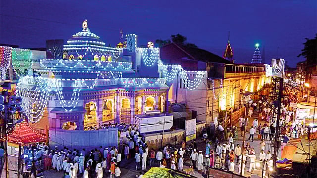 पंढरपूर - येथे श्री विठ्ठल- रुक्‍मिणी मंदिरावर केलेली आकर्षक विद्युत रोषणाई.