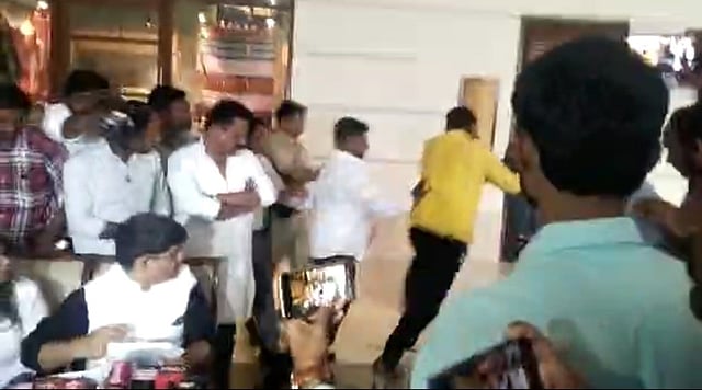 सध्या सुरू असलेल्या सीमाभागाच्या वादावर ॲड. जयश्री पाटील या उच्च न्यायालयात आपली बाजू मांडतील, यासंदर्भात ॲड. सदावर्ते पत्रकारांशी संवाद साधत होते. त्यावेळी मराठा समाजाचा एक तरूण हॉटेलमध्ये आला आणि ‘जाहीर निषेध जाहीर निषेध’ अशी घोषणाबाजी करू लागला. त्याचवेळी पत्रकार परिषदेपूर्वी हॉटेलमध्ये उपस्थित संभाजी ब्रिगेडचे पदाधिकारी सोमनाथ राऊत यांनी ॲड. सदावर्ते यांच्या अंगावर शाई फेकली. मराठा समाजाच्या आरक्षणाला विरोध करणाऱ्या सदावर्तेंना महाराष्ट्रात कुठेही फिरू दिले जाणार नाही, त्यांची अशीच गत केली जाईल, असा इशारा देखील त्यांनी यावेळी दिला. जय भवानी जय शिवाजी, एक मराठा लाख मराठा अशी घोषणाबाजी त्यांनी केली.