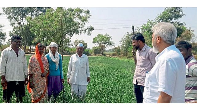 मुंबई - शेतकऱ्यांचे प्रश्न समजून घेण्यासाठी ‘कृषिमंत्री एक दिवस शेतावर’ हा उपक्रम राबविण्याचे कृषिमंत्री दादा भुसे यांनी नुकतेच नागपूर येथे झालेल्या कार्यक्रमात जाहीर केले होते. त्याची अंमलबजावणी आठवडाभराच्या आतच कृषिमंत्र्यांनी केली असून, आज त्यांनी मालेगाव तालुक्यातील वळवाडे, अजंग-वडेल, झोडगे आणि माळमाथा भागातील शेतकऱ्यांच्या बांधावर जाऊन त्यांच्या समस्या जाणून घेतल्या.