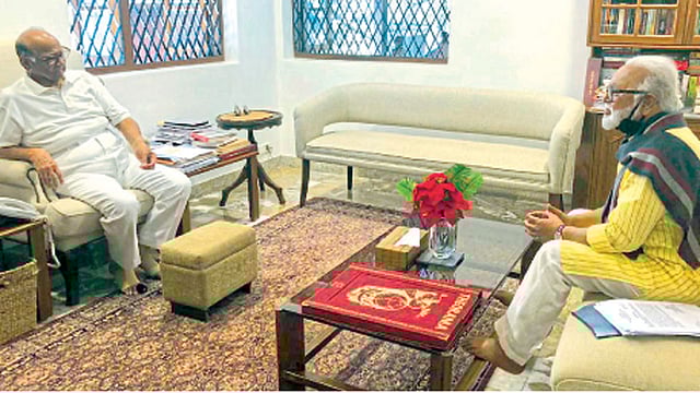 मुंबई - राष्ट्रवादी कॉंग्रेसचे अध्यक्ष शरद पवार यांची मुंबईतील निवासस्थानी शनिवारी अन्न व नागरीपुरवठामंत्री छगन भुजबळ यांनी भेट घेतली. यावेळी अन्न व नागरी पुरवठा विभागाकडून राज्यात करण्यात आलेल्या उपाययोजनांची माहिती पवार यांना दिली. तसेच राज्यातील ३ कोटी केशरी शिधापत्रिकाधारकांना कमी दरात अन्नधान्य उपलब्ध करुन देण्याचा प्रयत्न असल्याचेही भुजबळ यांनी स्पष्ट केले.