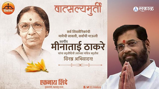 मुख्यमंत्री एकनाथ शिंदे यांनी ट्वीट करत मीनाताई ठाकरे यांना अभिवादन केलं आहे. आपल्या ट्वीटमध्ये शिंदे म्हणतात की, सर्व शिवसैनिकांची मायेची सावली, सर्वांची माऊली स्वर्गीय मीनाताई ठाकरे यांना स्मृतीदिनी त्यांच्या पवित्र स्मृतीस विनम्र अभिवादन. यासोबत शिंदे यांनी एक पोस्टरही शेअर केलं आहे. त्यात असलेलं शिवसेनेचं पक्षचिन्ह विशेष लक्ष वेधून घेत आहे.